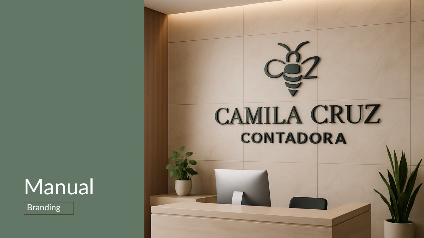 Projeto de identidade visual elegante e minimalista, com foco no símbolo da abelha e nas iniciais da marca. O manual apresenta variações refinadas de logotipo, paleta de cores com tons terrosos e dourado, além de aplicações realistas em mockups. A proposta transmite sofisticação, equilíbrio e confiança para uma marca contábil feminina e autêntica.